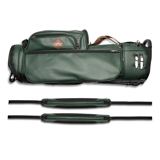 Designed with a versatile single or double shoulder strap configuration the Trouper 3.0 is your ideal companion on the course. A large insulated front cooler pocket has enough space to keep four 16oz cans cold. The two newly improved fleece-lined valuable compartments and seven-pocket design secures valuables while allowing for straightforward access. A large five-way divider allows for simple organization and an easy pull for all 14 clubs even with oversized grips. Simply put the Trouper 3.0 delivers an effortless and reliable experience for any player round after round. Featuring All-New Straps and a bolstered stand mechanism.